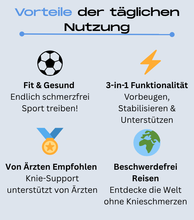 Zusätzlich kann der KnieFit auch Knieschmerzen vorbeugen, indem er dein Knie im Alltag unterstützt.